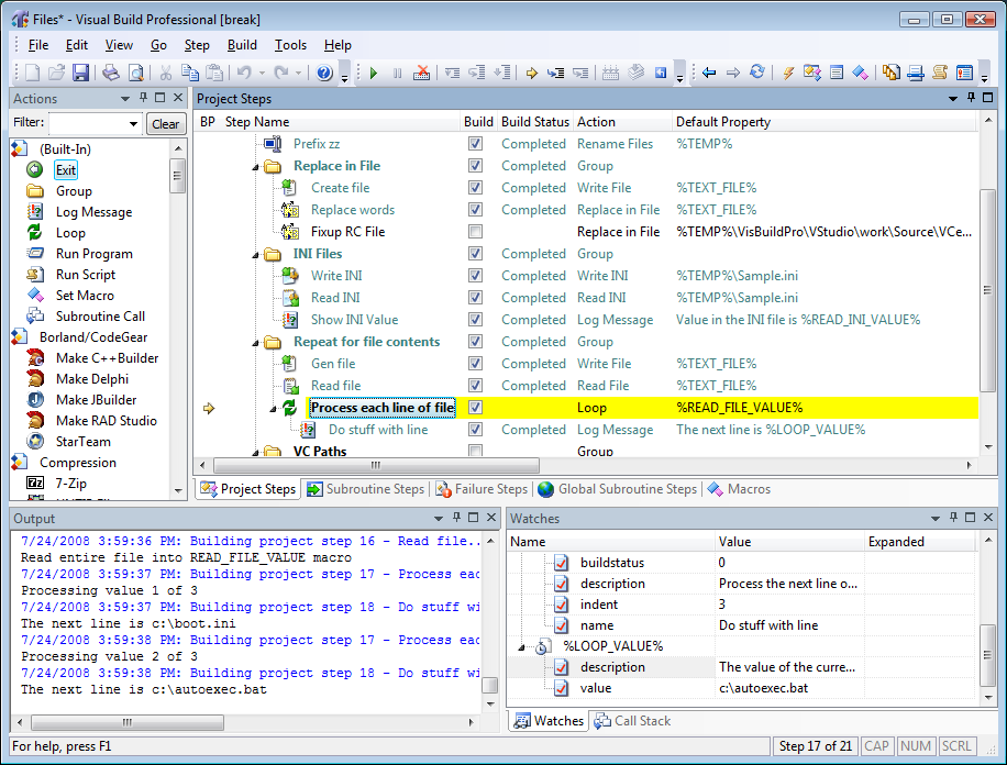 Visual Build makes it easy for all software developers and creators to automate repeatable processes when building different types of programs, games, websites and other applications. It offers an intuitive graphical user interface for quick project creation, debugging and management.