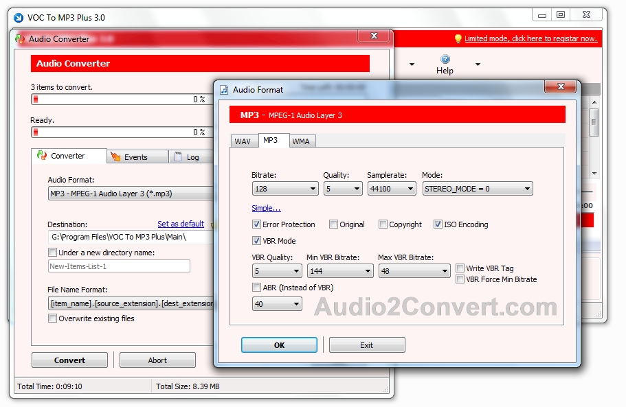 VOC To MP3 Plus allows you to convert VOC files to MP3/WMA/PCM WAV files. The result is in high quality. Using the editor included in the program, you can set the processing range, ID3 tags and also get information about the source file.