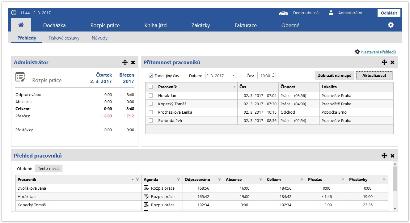 The PC application is part of a comprehensive system of work and attendance records www.vykazprace.cz. The basic element is a web application in which outputs and reports are available for one or more employees. Here it is also possible to customize the system to suit your exact needs.