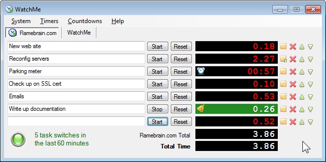 WatchMe is a simple app that looks like a stopwatch that can be used for a multitude of tasks and events. Each record is independent of the next, so you can easily measure multiple activities in one program. You can assign a custom name or note to each measurement for clarity. The program supports measurements in hour:minute:second format or in number of hours to two decimal places, and you can set to add or remove minutes.