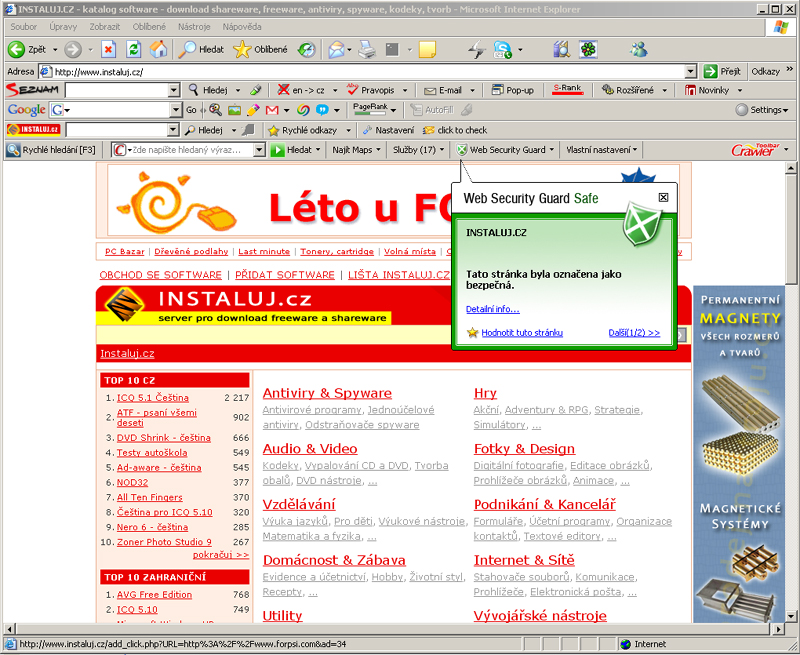 Web Security Guard is an easy-to-use program that helps protect your computer from all kinds of dangers lurking on the Internet, such as spyware, adware, spam and viruses. Web Security Guard informs you about potentially dangerous sites by displaying detailed information about the site and other users' ratings before you enter the site.