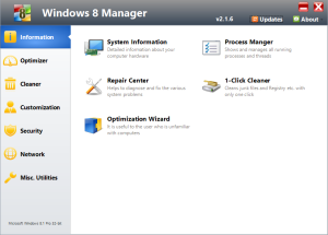 Windows 8 Manager is a program for Microsoft Windows 8 that includes over forty different tools to optimize, tweak, clean, speed up, and repair Windows 8 and 8.1.