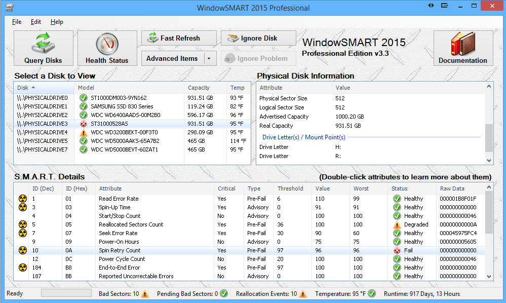 WindowSMART is a hard drive health protection software. It is a so-called monitoring system. It displays the most important information (physical and logical sector size, advertised and actual capacity, drive letters, also S.M.A.R.T. data, or parameters that are monitored inside the hard disk). The simple user interface shows you everything you need to know about disks in a single view.