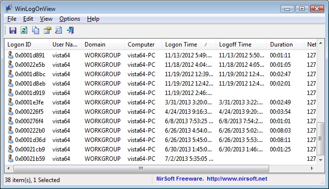 WinLogOnView reliably analyzes the Windows operating system security event log and detects the date and time of user logins and logouts. Each time a user logs in or logs out, the following information is displayed: login name, username, domain, computer, log in time, log out time, time, network address. WinLogOnView also allows you to easily export comma or tab separated login session information to an html/xml file.
