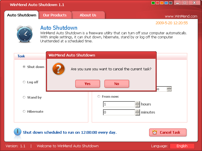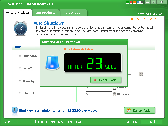 WinMend Auto Shutdown is a free program that allows you to shut down your computer automatically. With a simple setup, it can shut down, hibernate or log off your computer at a scheduled time. In the case of shutdown settings, the program minimizes itself to the system tray.