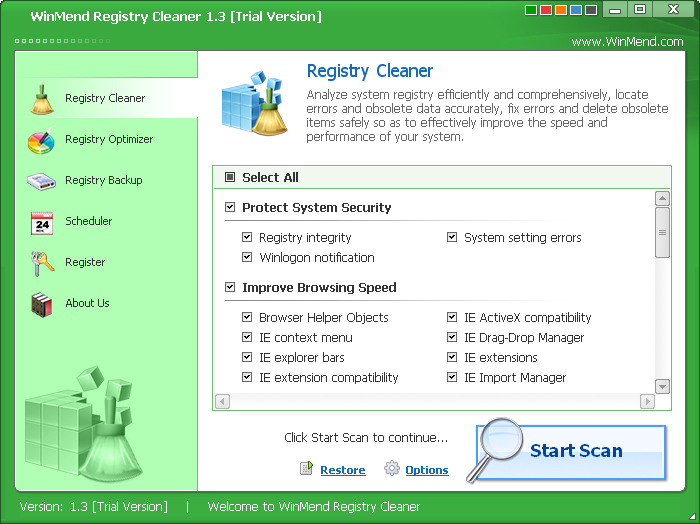 WinMend Registry Cleaner is a powerful and safe registry cleaner and optimization tool. It offers the following four main features: