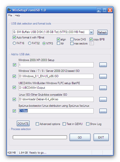 WinSetupFromUSB is a utility to create a bootable USB flash drive for installing the operating system without the need of a disk media (DVD). The utility will pre-format the portable disk. If there are important files on it, you need to proceed to back them up. The next step is to select the operating system file (e.g. Windows 2000, XP, 2003, Windows Vista, 7, 8 or Server 2008,10). Alternatively, you can also use one of the Linux distributions.