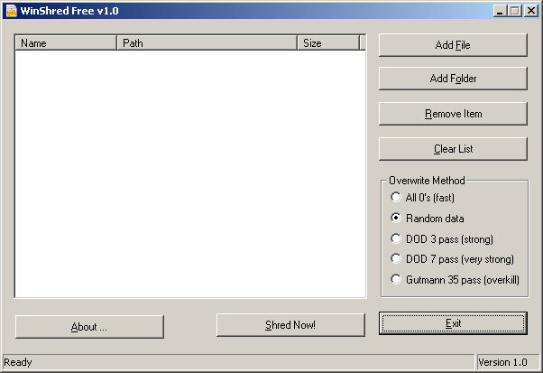 WinShred is able to overwrite a deleted track using up to five different methods.