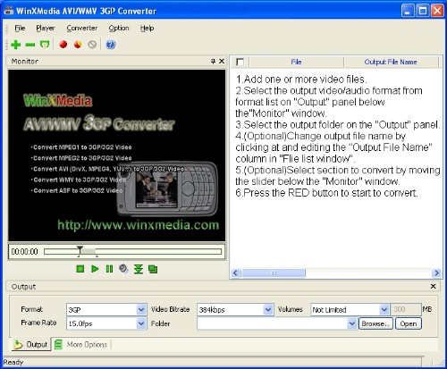 Winxmedia AVI/WMV 3GP Converter is a handy converter for converting AVI/WMV video files to 3GP format for mobile phones.