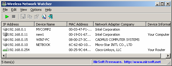 Wireless Network Watcher is a small utility that scans wireless networks and displays a list of all computers and devices currently connected to it.