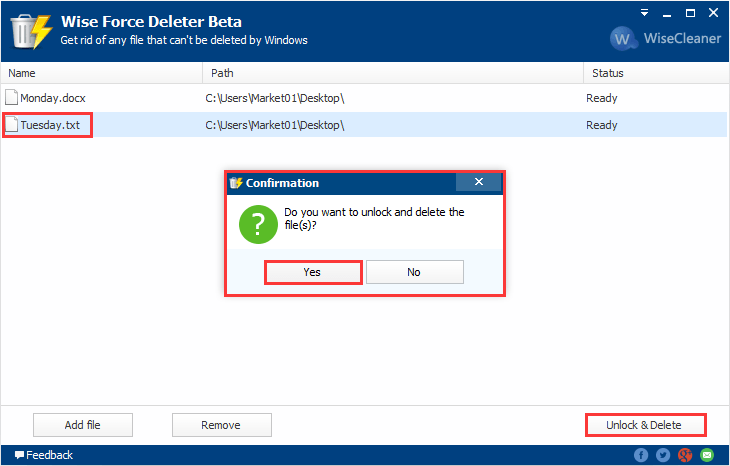 Wise Force Deleter is a special tool that will ensure you permanently and securely delete a file even if the file is locked by another application or has restricted access. The tool immediately terminates all processes that use the target file and then deletes it.