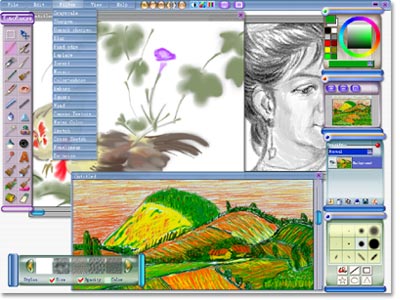 You can create your artwork by sketching or drawing on an existing image, which can be imported from a file or the Twain interface (scanner). Basic image editing (colors, brightness, etc) and various filters are also available.