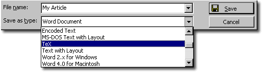 Word2TeX gives you the ability to convert existing Microsoft Word documents into LaTeX formats and create new LaTeX documents directly in a standard word processor.