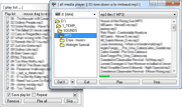 Simple player for playing avi, wav, midi, mpg and other multimedia files. You can set the sound, video size, playlist etc. The player has very simple controls and is free of charge.