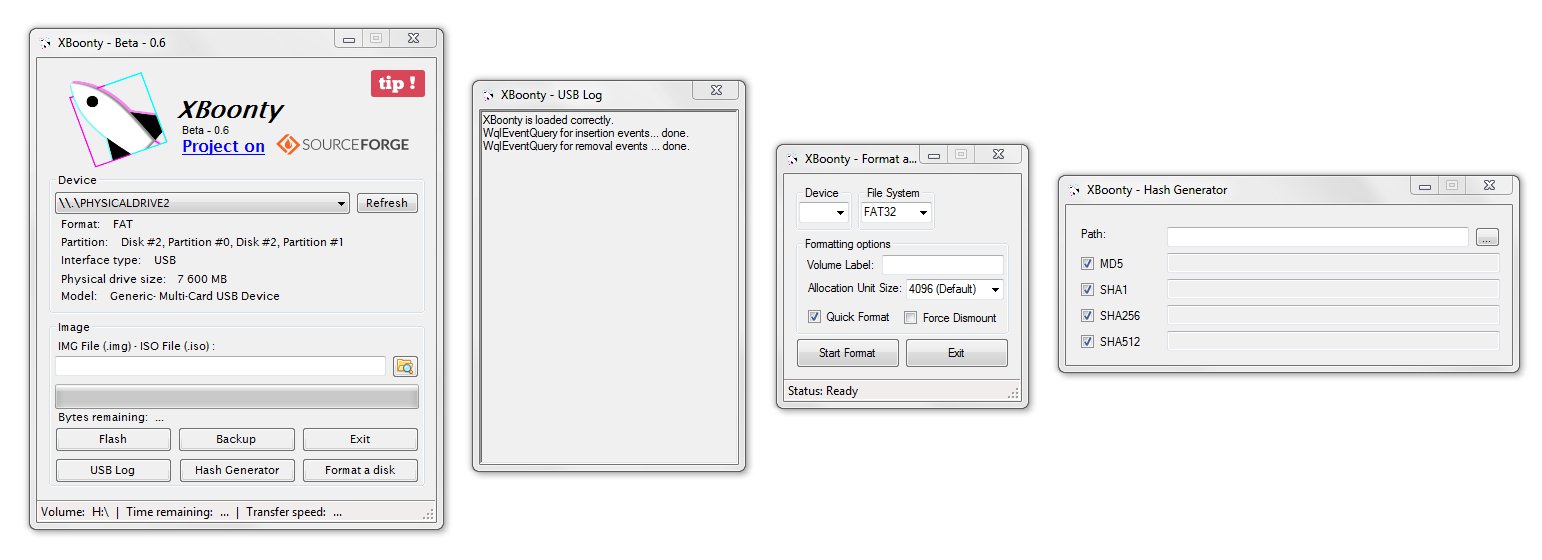 XBoonty is the fastest tool for writing disk image (.img, .iso) to SD card or USB flash drive. Of course, there are features such as disk image backup, advanced formatting of SD cards or USB drives and Hash generator.