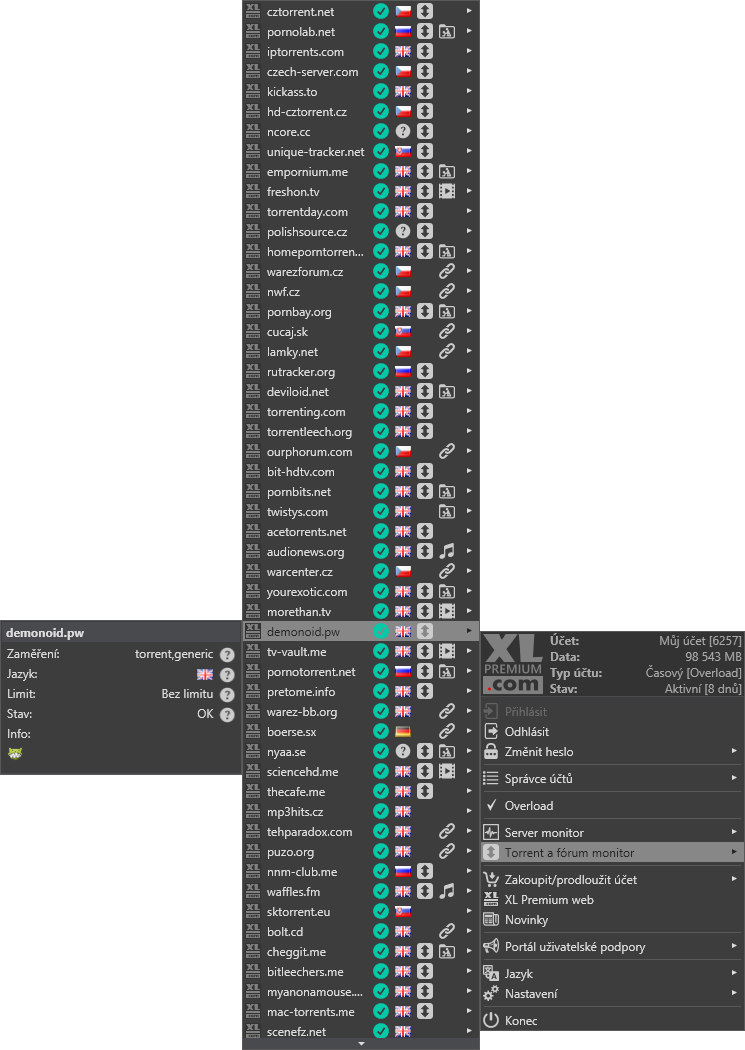 XL Admin is a mini-application designed to completely manage your XL Premium accounts. Once launched, it is typically located in the bottom right as an icon in the system tray. Right-clicking on the application icon brings up a context menu through which your XL account can be set up and controlled.