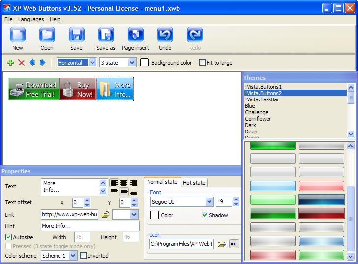 XP Web Buttons is a modern tool that makes it easy to create professional graphical buttons and navigation menus for XP design websites. It does not require any programming or drawing skills.