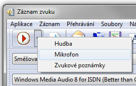 Recording can be started by selecting the appropriate item from the context menu next to the icon in the notification area, or from the main application window menu.