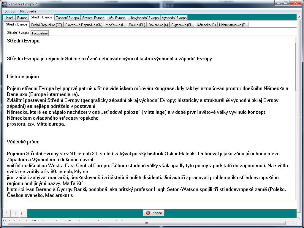 Going abroad in Europe and need to learn about the country? The Czech program created by MF Software contains 166 articles and more than 550 pictures. The program is especially created for schools but also for ordinary families. About 30 articles are already spoken The program can be used for reports but also for learning. A new version is currently being developed. In the future it is planned to make the whole program completely new. The new version of Geography of Europe 2.5 can only be downloaded on the main MF Software website (manufacturer's website)! New version enriched with new design and new dialogues. I would like to draw your attention to the Collaboration program, about which you can learn more on the manufacturer's website. In this program you will help the creation of similar programs. For more information, please visit the above address.
