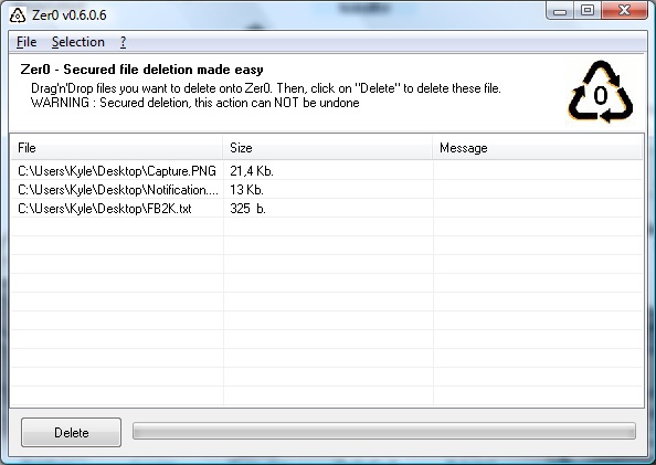 Zer0 is a user-friendly file deletion tool with a high level of security. With Zer0, you will be able to delete files and prevent file recovery through 3rd person. So far, no user has reported an effective way to recover a file after deletion by Zer0.