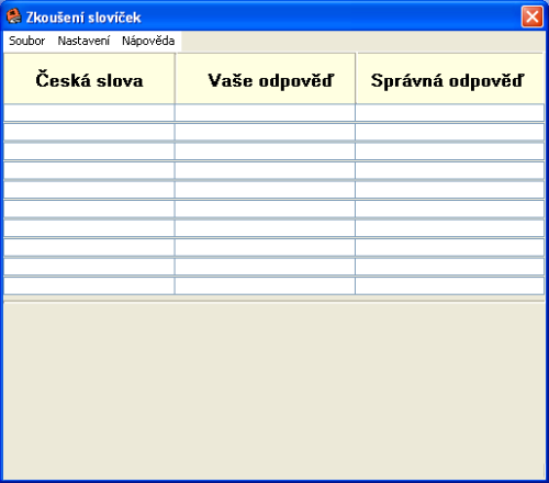 This simple program is used to test vocabulary from a foreign language into Czech and vice versa.